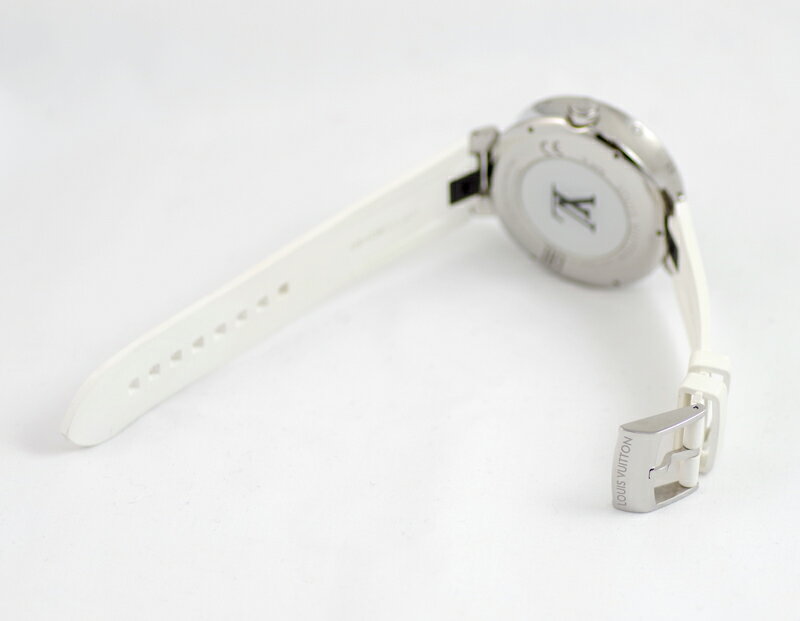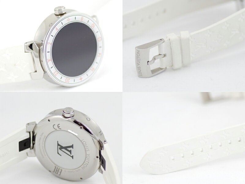 LOUIS VUITTON ルイヴィトン タンブール ホライゾン ホワイト 白 QA000Z 黒 ブラック 文字盤 SS ステンレス 純正ベルト モノグラム メンズ クォーツ デジタル 充電【腕時計】【中古】