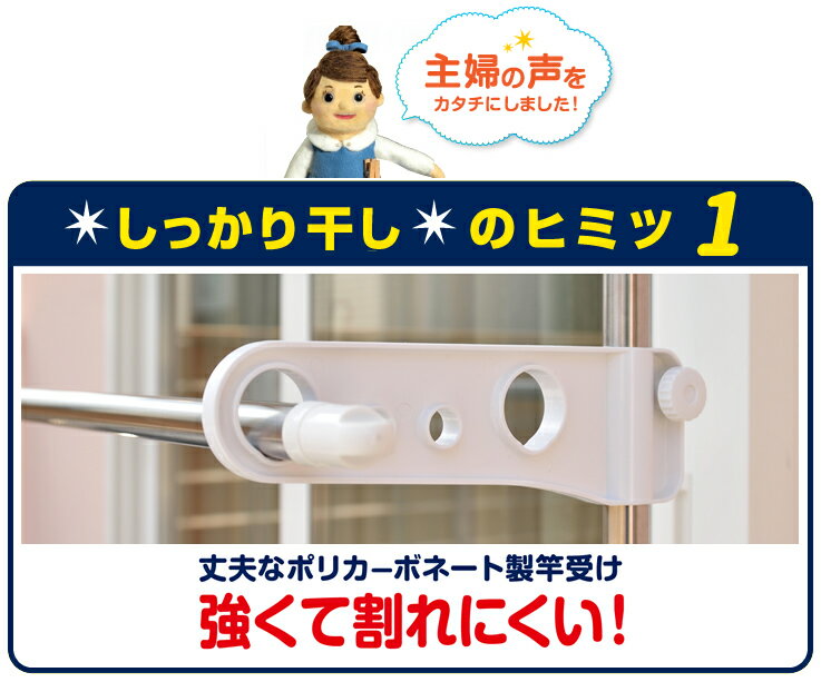 主婦の「もうちょっと○○だったら・・・」の不満を解消!白いパーツで清潔感のある、天馬の洗濯物干しシリーズ【ポーリッシュ】。
