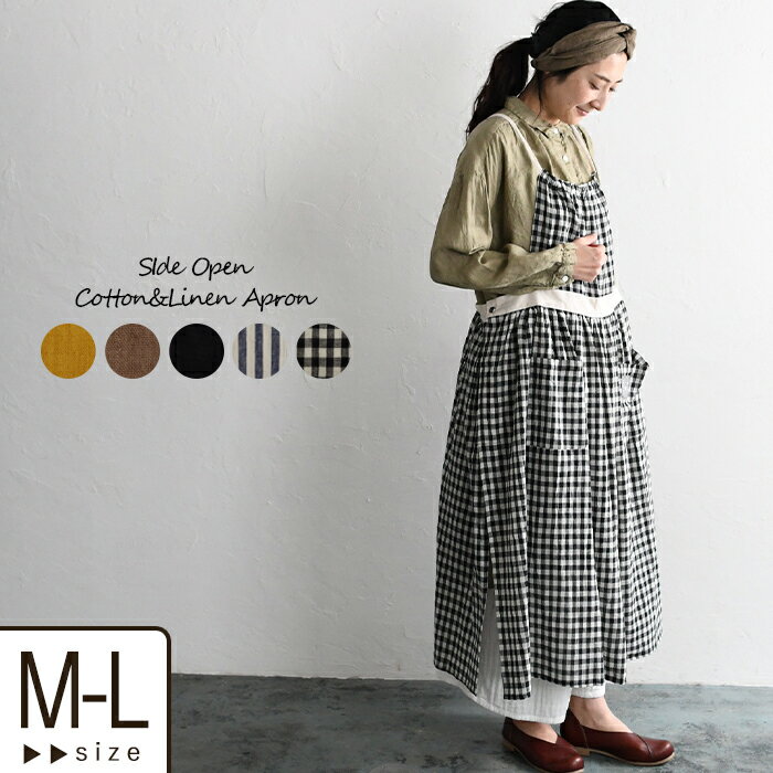 エプロン サイド開き コットンリネン 母の日 ギフト ロング /無地 ストライプ チェック カフェエプロン 胸当て付き ロング 大人 ナチュラル シンプル おしゃれ かわいい z+,Ms,Ls, / 1920SS0329, x02,r05d,