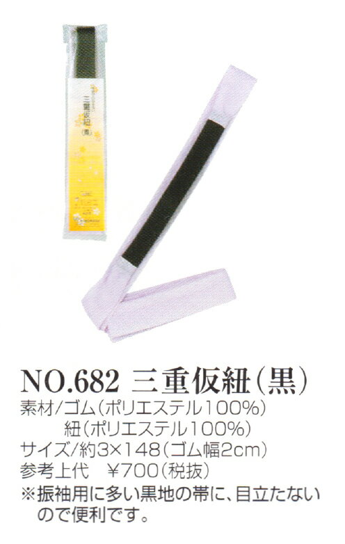 呉服屋 あづま姿(仮紐) 三重仮紐 (黒) 振袖用に多い、黒地の帯にオススメ ゴム幅2cm 着付小物 和装小物 取り寄せ あずま姿 メール便OK